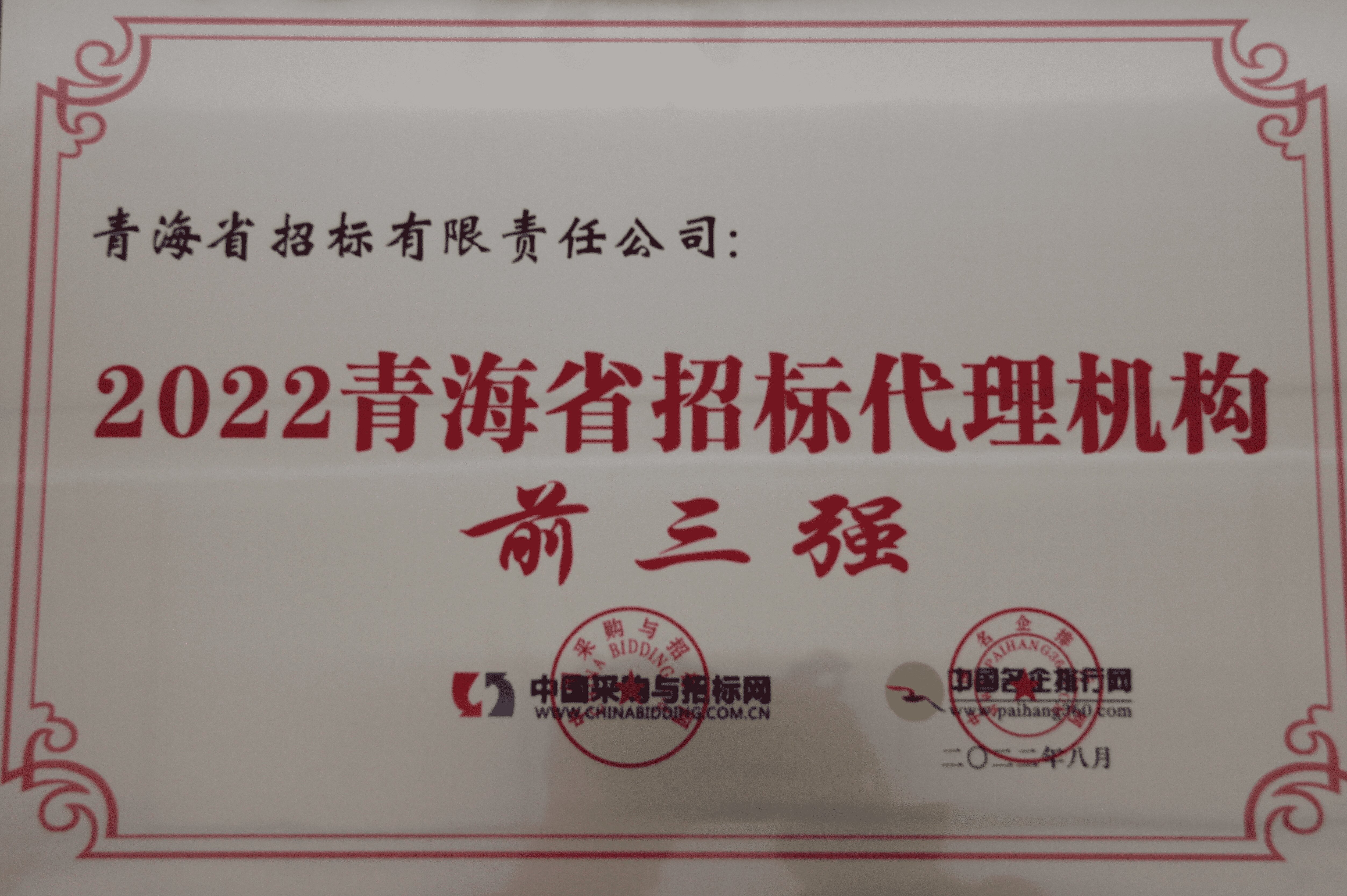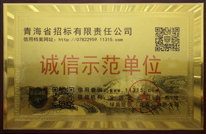 COMPANY HONORS青海省招標(biāo)有限責(zé)任公司公司榮譽(yù)