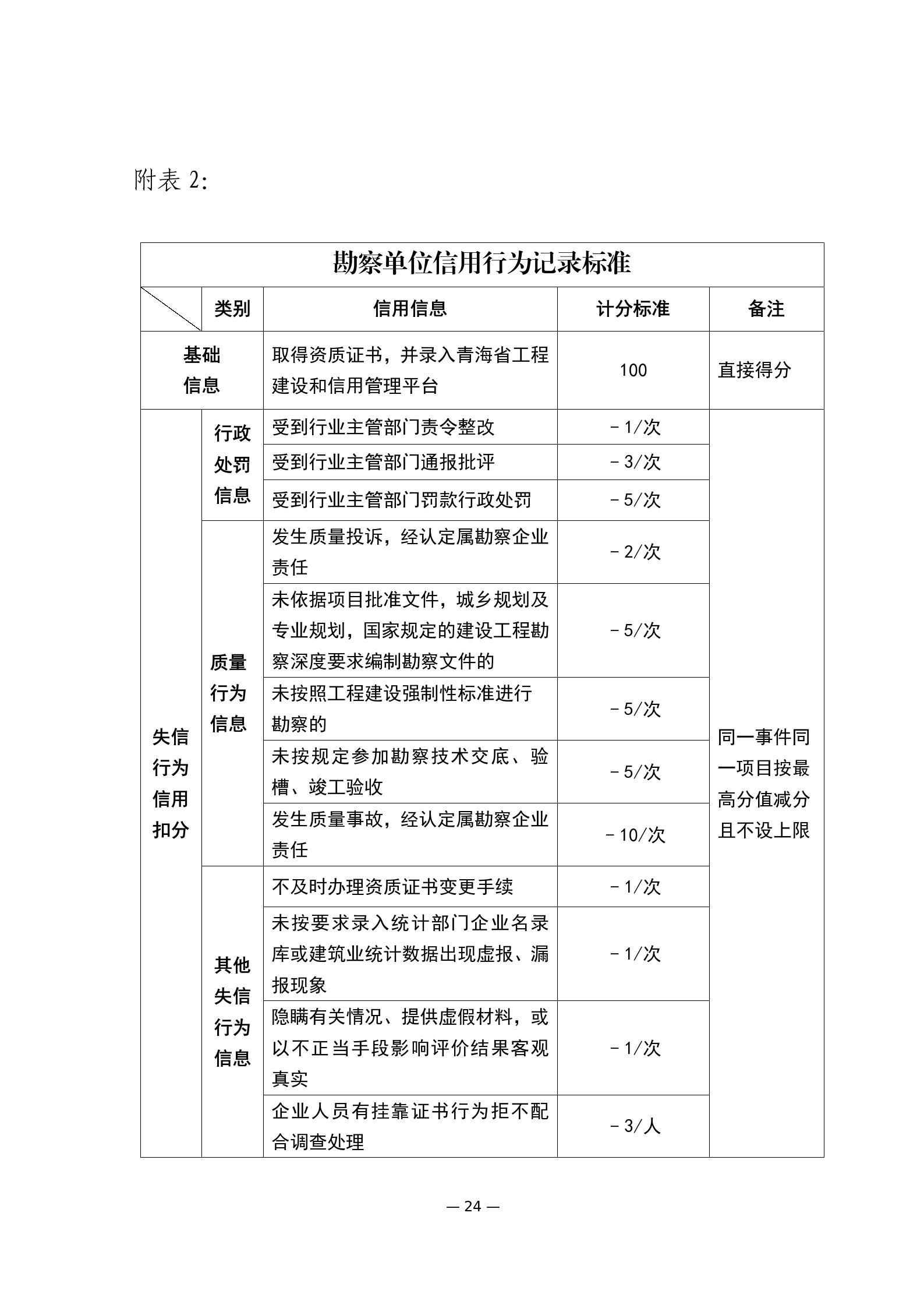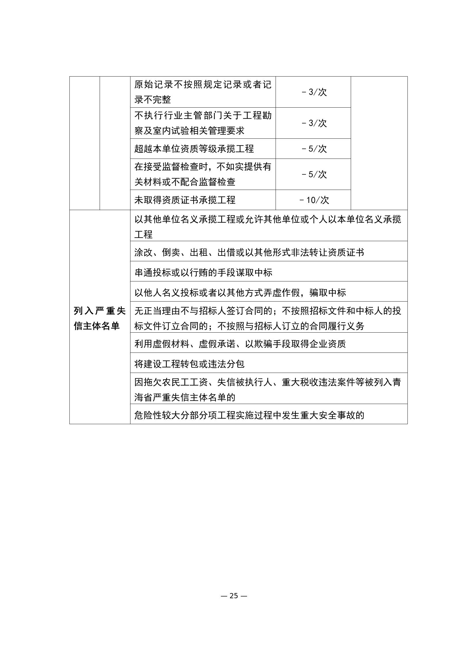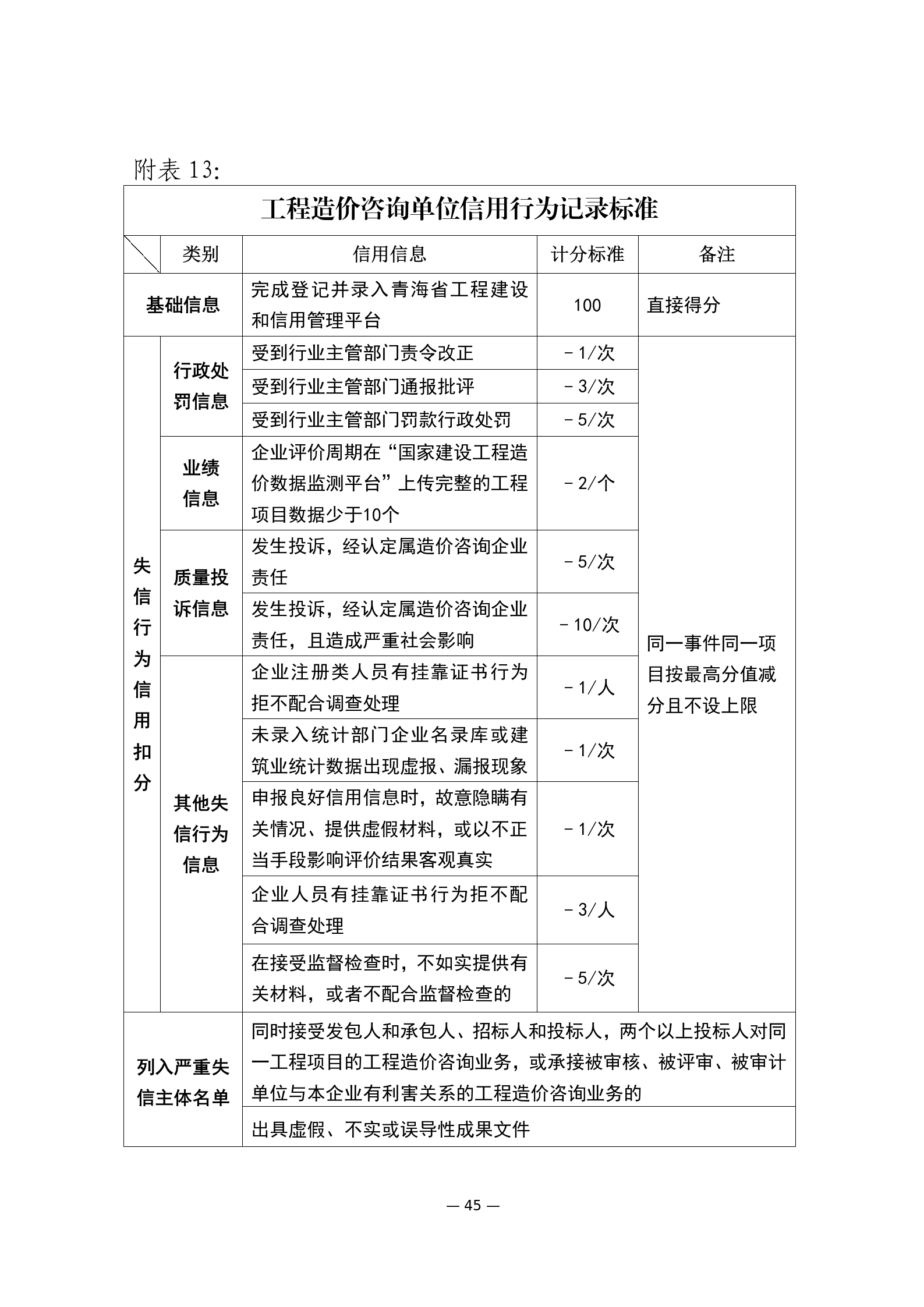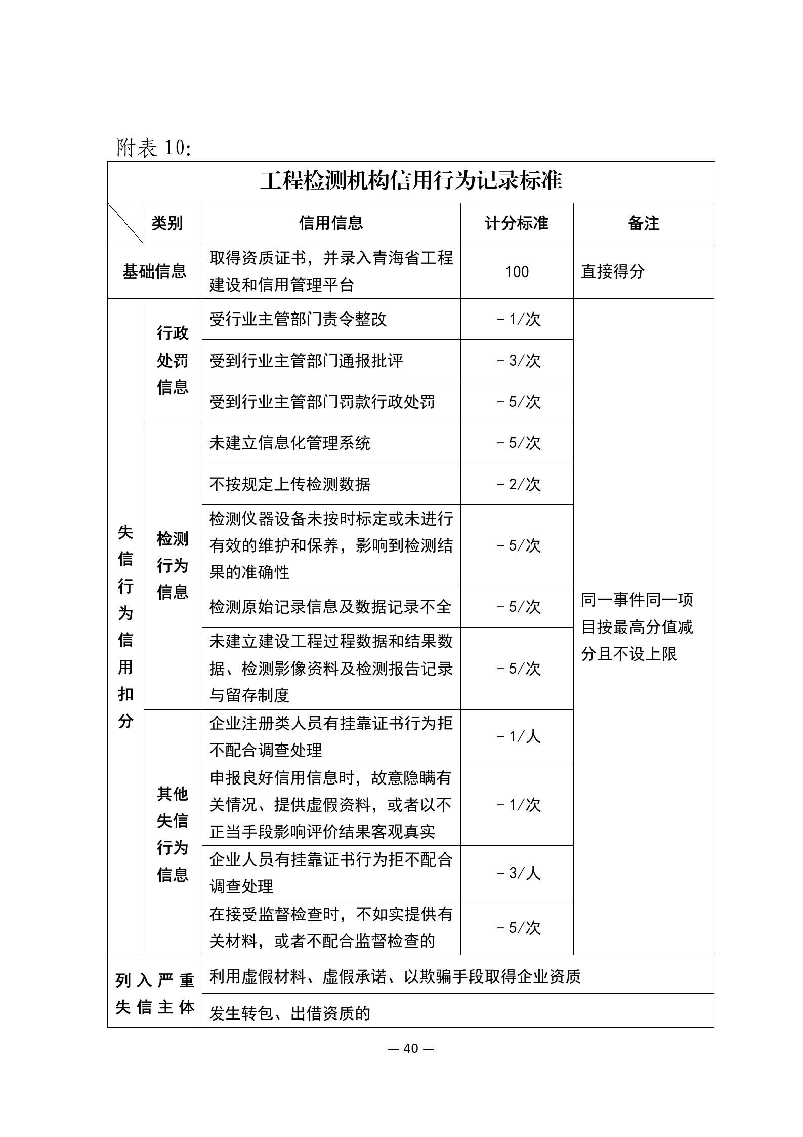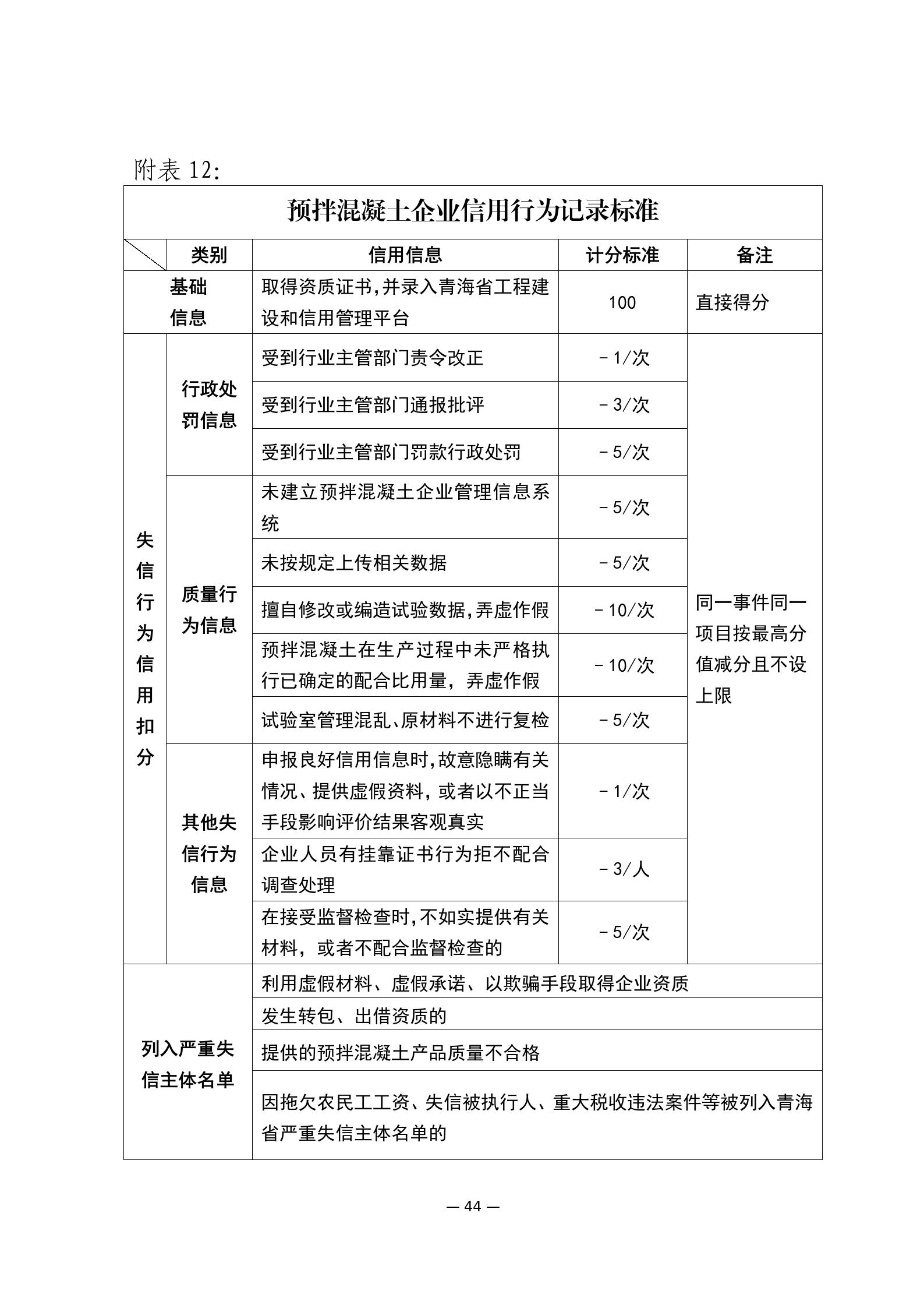 第十六條 建筑市場各方主體和從業(yè)人員的信用評價實行信用記錄、守信獎勵和失信行為動態(tài)記錄記分制。根據(jù)《青海省建筑市場各方主體和從業(yè)人員失信行為記分標(biāo)準(zhǔn)》(附件)進(jìn)行公開展示和記分?;A(chǔ)分100分。