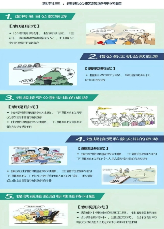 5.公款旅游以及違規(guī)接受管理和服務(wù)對象等旅游活動安排;
